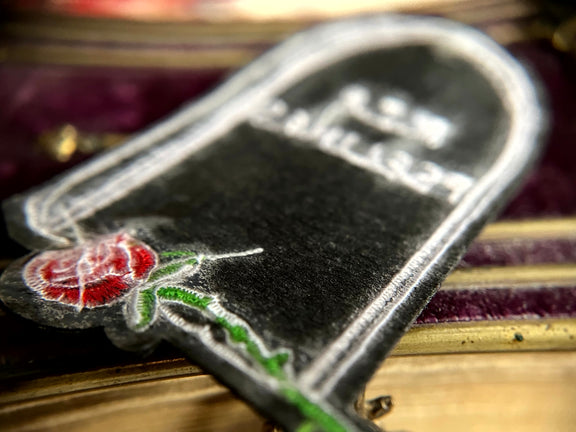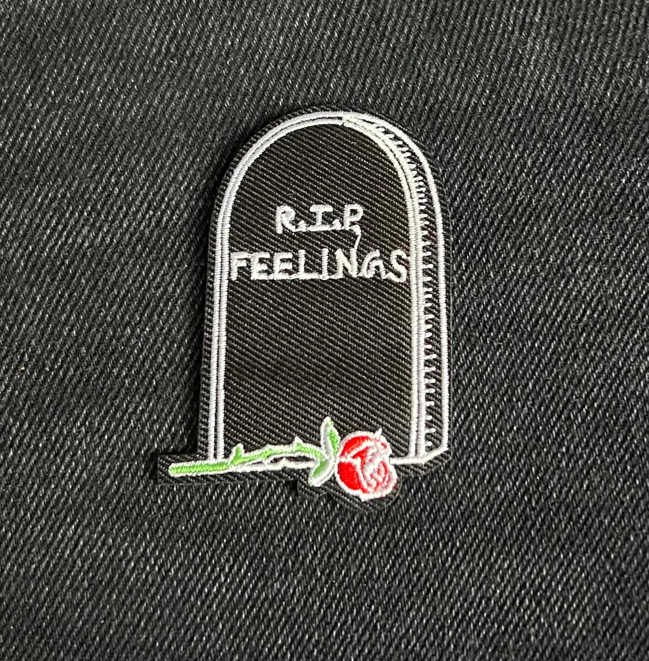 Patch in Form eines Grabsteins mit "R.I.P Feelings"-Stickerei zum Aufbügeln- oder nähen.