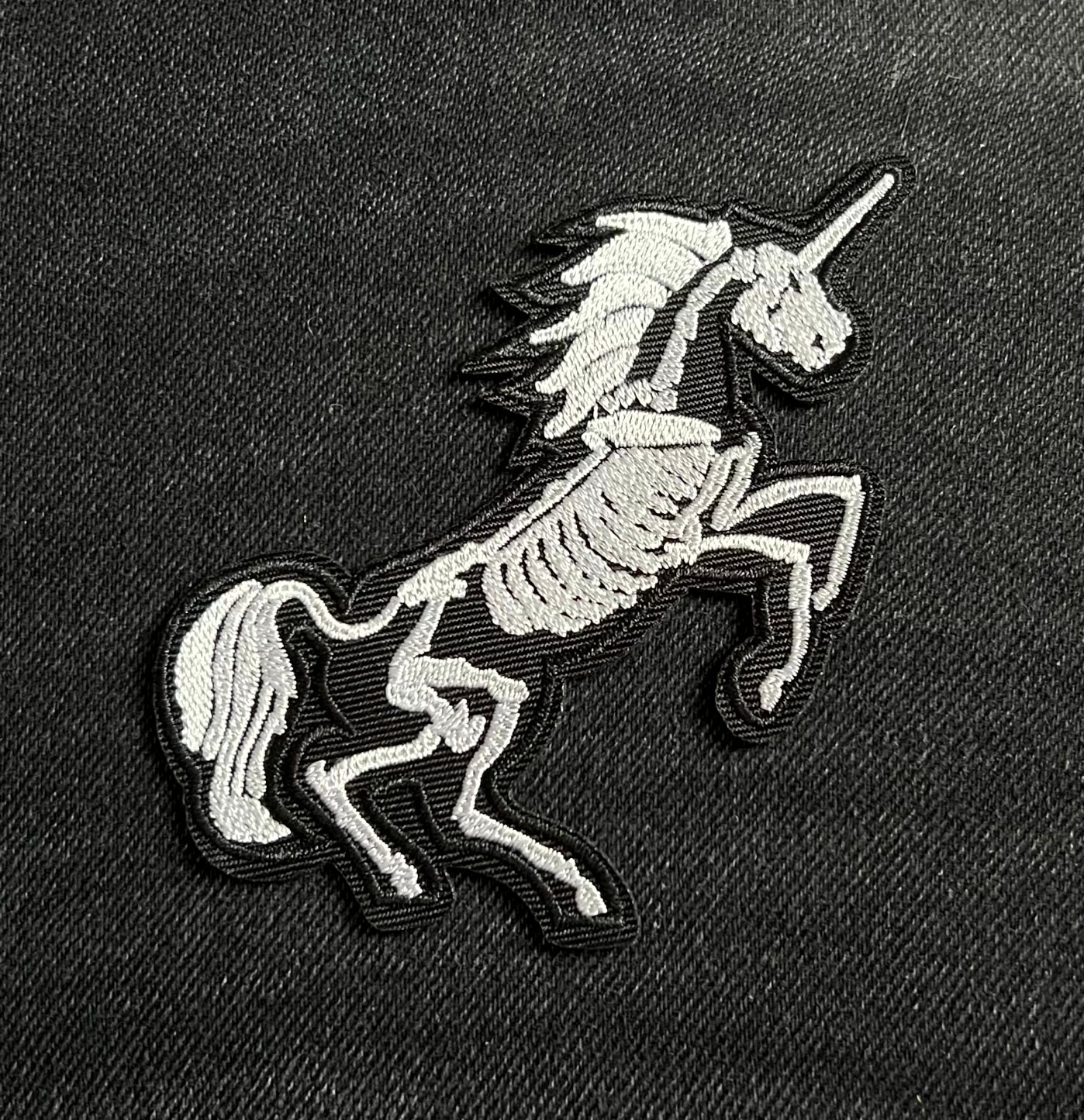 Patch in Form eines Pferds mit Skelettstickerei zum aufbügeln.